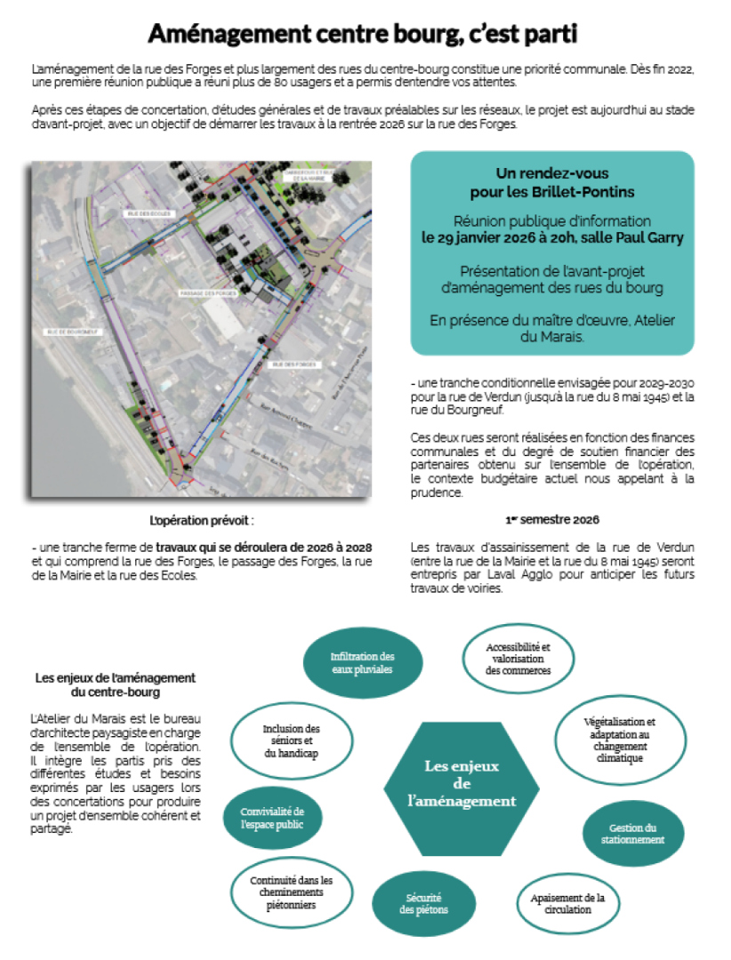 La commune poursuit le projet de réaménagement du centre-bourg afin d’améliorer le cadre de vie, les déplacements et l’attractivité commerciale.